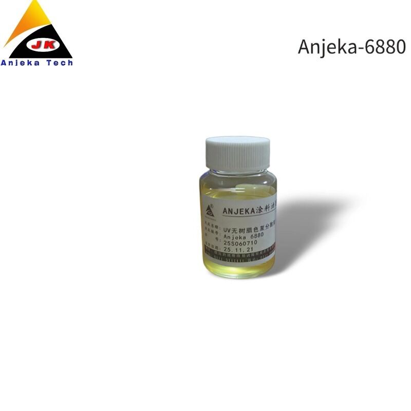 Anjeka-6880は、溶剤フリーのUV硬化型インクジェットインク用に特別に配合された湿潤分散剤です。有機顔料やカーボンブラックを効果的に安定化させ、ミルベースの粘度を大幅に低下させると同時に、貯蔵安定性を向上させます。